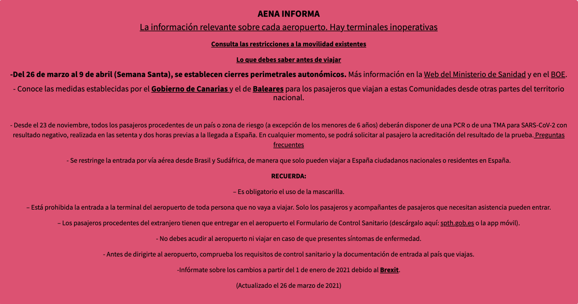 INFORMATIONS SUR AENA, TOUS LES SERVICES DES AÉROPORTS DANS CHACUN DES LIENS EN CLIQUANT SUR LE NOM.