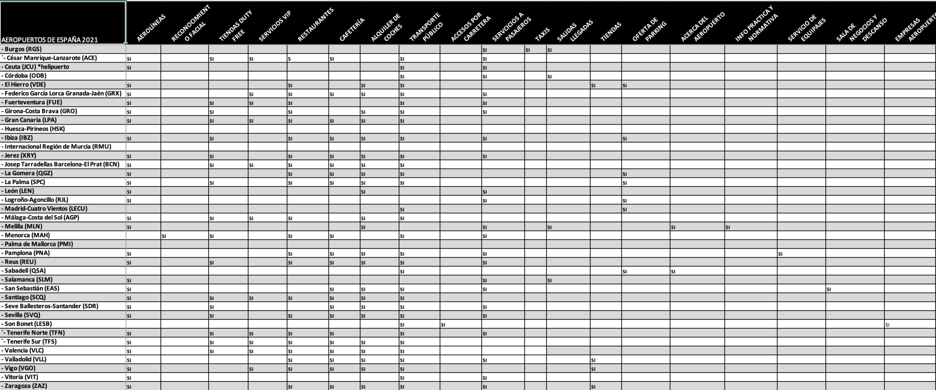 INFORMATIONEN ÜBER AENA, ALLE DIENSTLEISTUNGEN DER FLUGHAFEN IN JEDEM DER LINKS, indem Sie auf den Namen klicken.